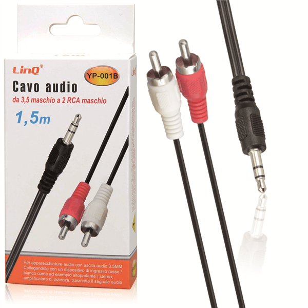 Câble audio stéréo jack 3,5″ vers 2 RCA 1,5 m sous emballage blister